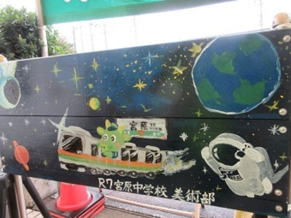 10月25日(土)宮原公民館文化祭に美術部が作品を出品しました。また、公民館の入り口に設置する看板を、美術部で制作させていただきました。公民館を利用される方に喜ばれるように、宮原地区で親しみのあるものをモチーフに制作しました。お近くに行かれる際に、ご覧いただけると幸いです。